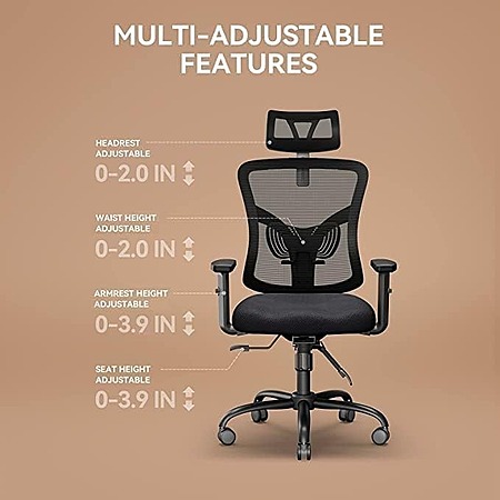 Model: NOBLEWELL Office Chair Ergonomic Office Chair High Back Mesh Computer Chair with Lumbar Support Adjustable Armrest, Backrest and Headrest