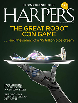 Harper's Magazine is a renowned American monthly magazine known for its long-form journalism, essays, and commentary on politics, culture, literature, and the arts. Its articles are known for their high-quality writing and thoughtful analysis, appealing to a readership interested in deep, reflective journalism. Order your complimentary 1-year subscription (a $10 value) today.