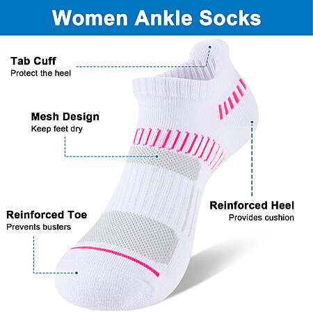 COOPLUS Womens Athletic Ankle Socks, Cushioned Low Cut Breathable, 6 Pairs at Walmart $10