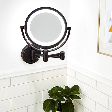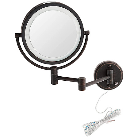 - SPECIFICATIONS - This bronze finish mirror includes a 13.5-inch extendable wall-mount and mounting hardware, allowing you to save valuable counter space. This 8.5" diameter mirror is great for shaving, grooming, makeup application and more! This mirror comes with a 6.5' power cord and plug.
