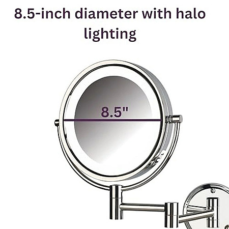 - HALO LIGHTING - The Jerdon HL88BZL mirror features halo lighting around the perimeter of the circular frame. The LED bulbs use less energy and are cool to the touch. Experience flawless makeup application and grooming with the combination of bright lights and 8X magnification