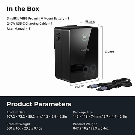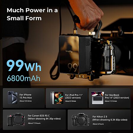SmallRig V Mount Battery, 99Wh / 6800mAh 7-Port Portable Charger with 100W Output, 2.5H Full Charge, PD 3.0 Fast Charging, for Filmmakers, Cameras, $175 @ Amazon or Smallrig.com