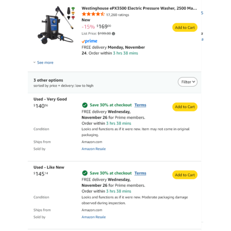 Westinghouse ePX3500 Electric Pressure Washer, 2500 Max PSI 1.76 Max GPM with Anti-Tipping Technology - Used, Like New $101.60