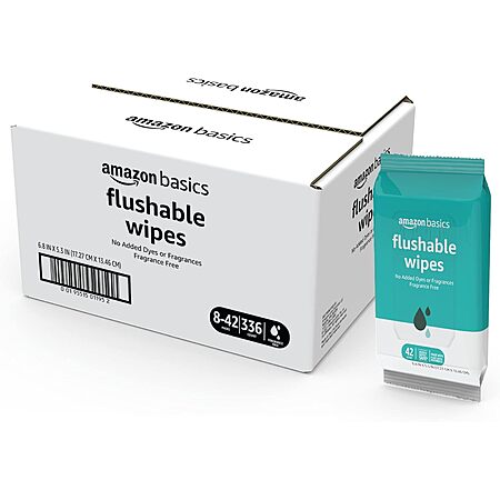 Amazon Basics Flushable Adult Toilet Wipes, Fragrance Free, 42 Count (Pack of 8) (Total 336 wipes) (Previously Solimo) $9.40 S&S Shipped Amazon
