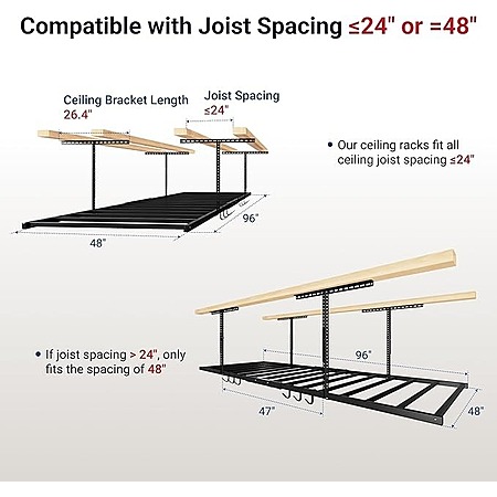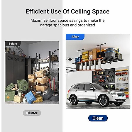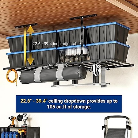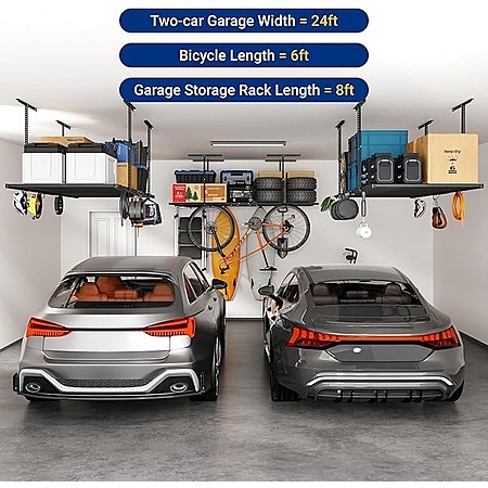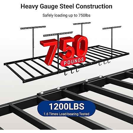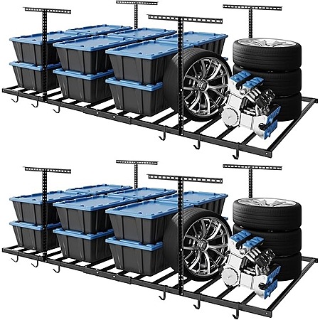 2-Pack 4'x8' FLEXIMOUNTS Adjustable Height Heavy-Duty Overhead Garage Storage Rack w/ 750lbs Capacity & 6 Hooks (Black) $218.50 + Free Shipping