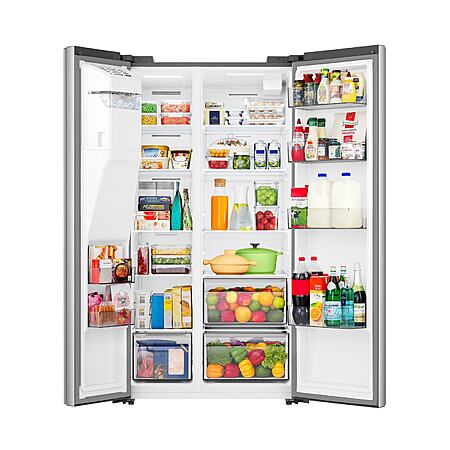 Big Fridge for a Big Family - Meet the Hisense UltraCapacity Side by Side refrigerator—the ultimate storage powerhouse. With the No. 1 capacity in the US and UltraSpace drawers Maximizing storage for produce and frozen items with extra-deep, ultra-spacious compartments. You'll never run out of room (Yes, even those impulse Costco hauls). The In-Door Ice Maker frees up freezer space, while the UltraTall ice and water dispenser easily fits up to 10" tumblers. Adjustable shelves and a gallon door bins maximize flexibility for all your storage needs. Bigger really is better. Hisense 29.1-cu ft Standard-Depth 36-in Wide Side-by-Side Refrigerator with Ice Maker ,Water and Ice Dispenser ( Stainless steel ) | HRS290P5FSE