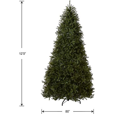 • This Dunhill Fir Full Artificial Green Christmas Tree is 12 feet tall with a 80 inch base diameter. Featuring hundreds of individually crafted branch tips to create full bodied branches, this tree is designed to look and feel lifelike.