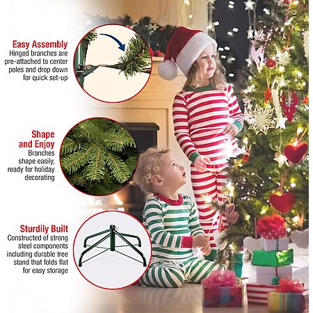 • Constructed with sturdy, high quality materials, hypo-allergenic, fire-resistant needles, this tree is built to bring holiday cheer for years to come. Includes a durable metal base.
