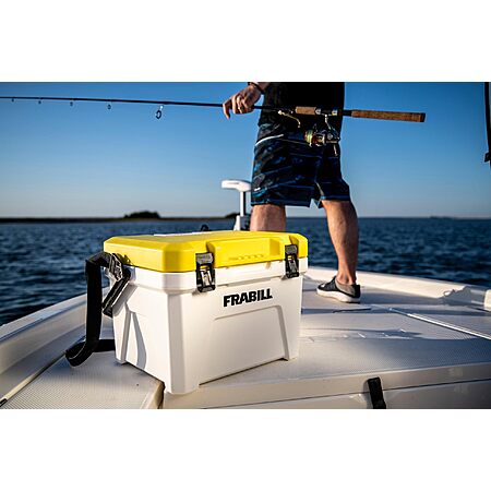 $39.99*:19-Quart Frabill Magnum Bait Station: Live Bait Well (White & Yellow)19.5” L x 11.5” W x 13.8” H