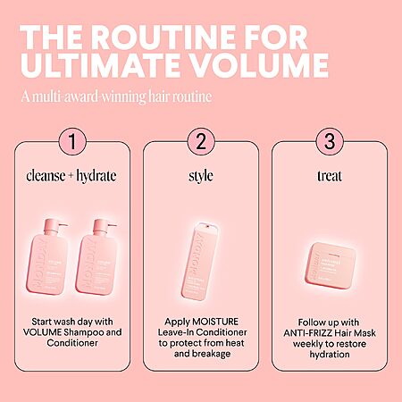 - VOLUME SHAMPOO + CONDITIONER: This award-winning Shampoo and Conditioner set helps deeply cleanse and lightly hydrate thin, fine and oily hair types. It contains Ginger Extract, Vitamin E and Coconut Oil to leave hair feeling invigorated and balanced.