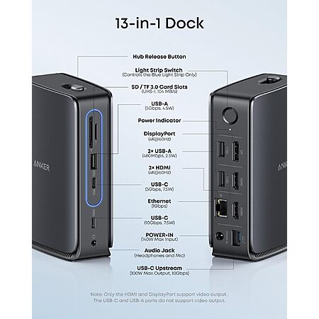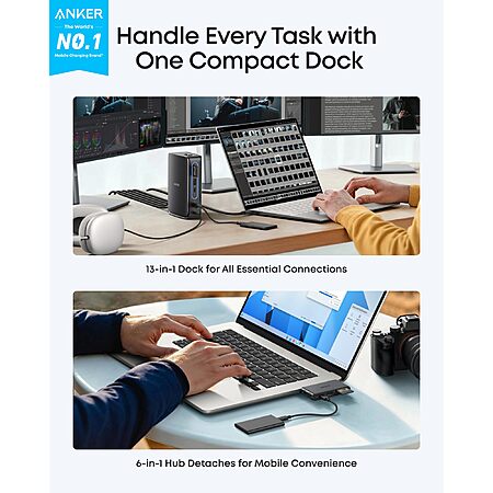 AnkerDirect via Amazon.com has Anker Nano Laptop Docking Station with Built-in Hub, 13-in-1 USB-C Triple Display with 2 HDMI and 1 DP, 10 Gbps USB-C, 3 USB-A, Audio, SD/TF, Ethernet, 100W Max PD for Dell, Lenovo, HP, and More on sale for $119.99.
