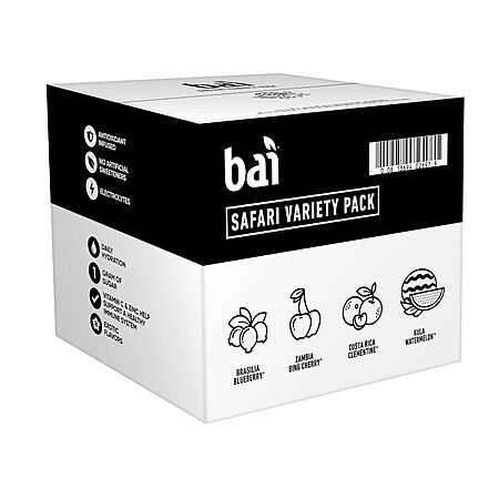 Amazon has 12-Pack 18-Oz Bai Antioxidant Infused Flavored Water (Safari Variety Pack) for $12.32 - 5% ($0.62) when you check out via Subscribe & Save = $11.70. Shipping is free with Prime or on $35+ orders.