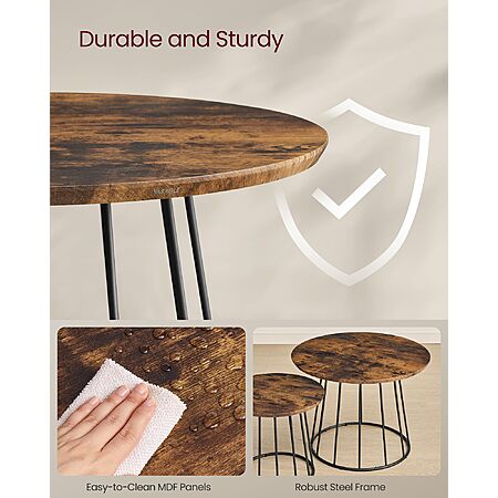 Model: VASAGLE Round Coffee Tables, Set of 2, Modern Circle Side Tables with Steel Frame, for Living Room, Bedroom, Rustic Brown ULCT045K01