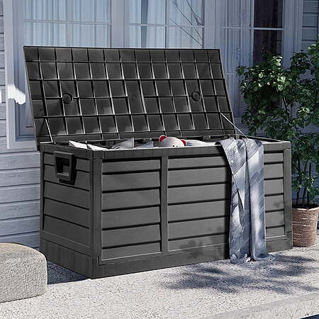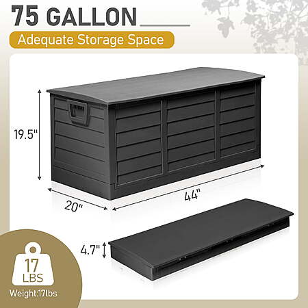Walmart has 75-gallon Ktaxon Outdoor Garden Plastic Storage Deck Box (various) for $40. Shipping is free.