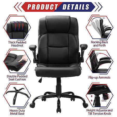 Model: JONPONY Big and Tall Office Chair 400LBS Wide Seat Ergonomic Computer Desk Chair High Back Executive Leather Chair Adjustable Task Chair Lumbar Back Support 8 Hours Heavy Duty Design,9189,Black