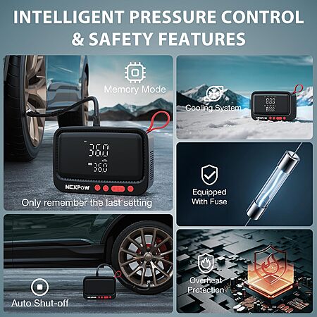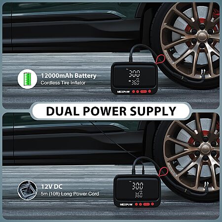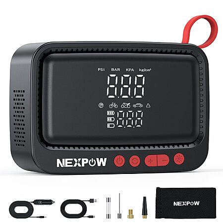 NEXPOW Tire Inflator Portable Air Compressor, 150 PSI Cordless Air Pump for Car Tires with Dual Digital Pressure Gauge and Auto Shut-Off, Portable Tire Inflator $18.99