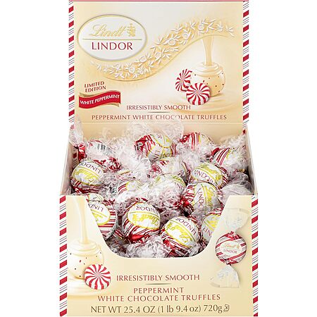 Lindt LINDOR White Chocolate Peppermint Truffles, White Chocolate Candy with Smooth Peppermint Truffle Center, 25.4 oz., 60 Count~$20.04 With S&S @ Amazon