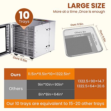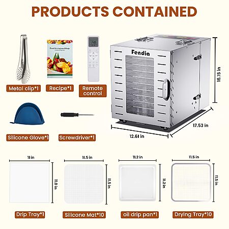 Amazon.com: Food Dehydrator for Jerky, Remote Control, Large 10 Stainless Steel Trays, 1000W Fruit Dehydrator, 24H Timer and 194°F Temperature Control, Overheat Protection, Food Dryer for Jerky, Fruit, Dog Treats: Home & Kitchen