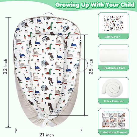 Baby Lounger Kiss Gold Breathable Soft Cotton Cover Baby Lounger Nest $18.99 @ Amazon
