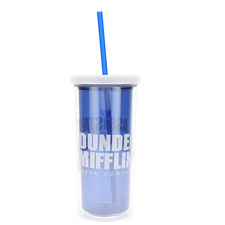 Model: Silver Buffalo - The Office Dunder Mifflin Plastic Carnival Cup With Straw | Hold 20 Ounces - Blue